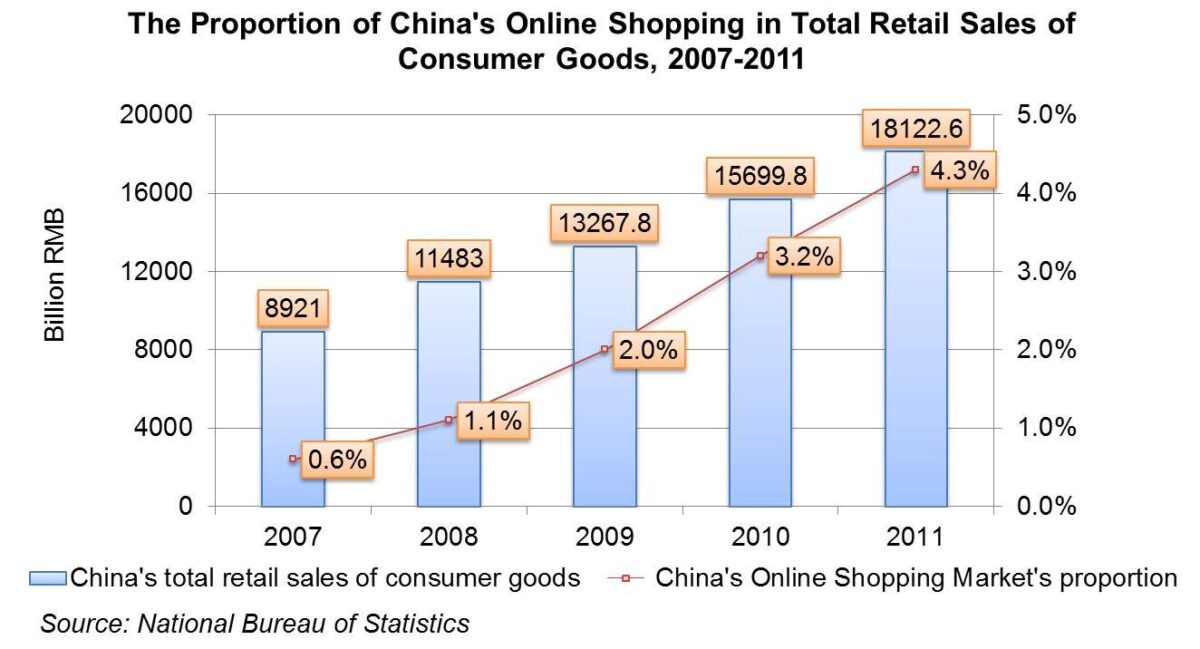 According to the National Bureau of Statistics, China’s total retail sales of consumer goods reached 18 trillion RMB and the number of online Shopping users reached 194 million. At the same time, in 2011, China’s Online Shopping Market reached 773.6 billion RMB, with a year-on-year growth of 55.3%. The transaction…